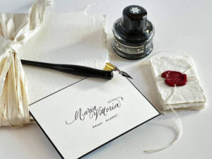 Un servizio artigianale per rendere ogni dettaglio ancora più raffinato. Nomi, frasi o dediche scritte a mano con la grazia e la tradizione della calligrafia classica.